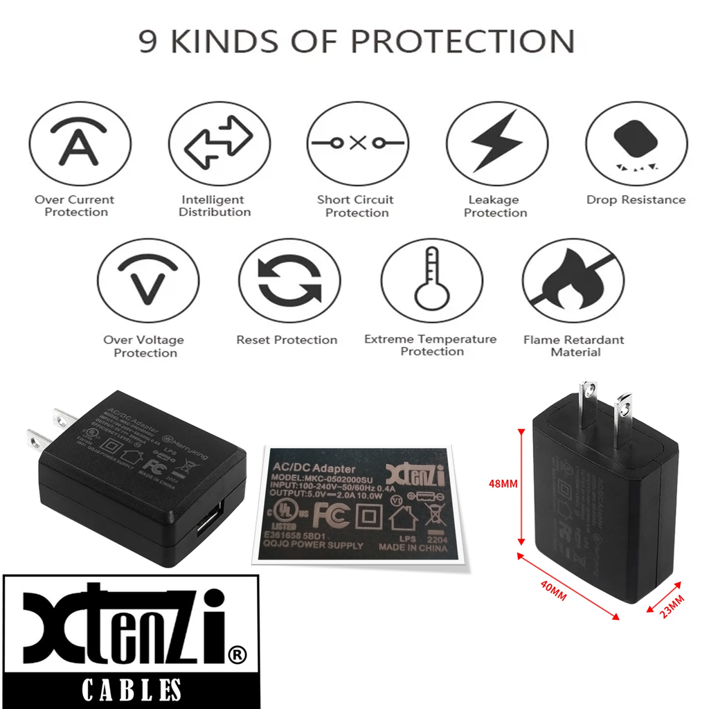 - Xtenzi Power Wall Adapter with USA Plug that will work with Select ALFAJR Azan Clock With USB-Connection.