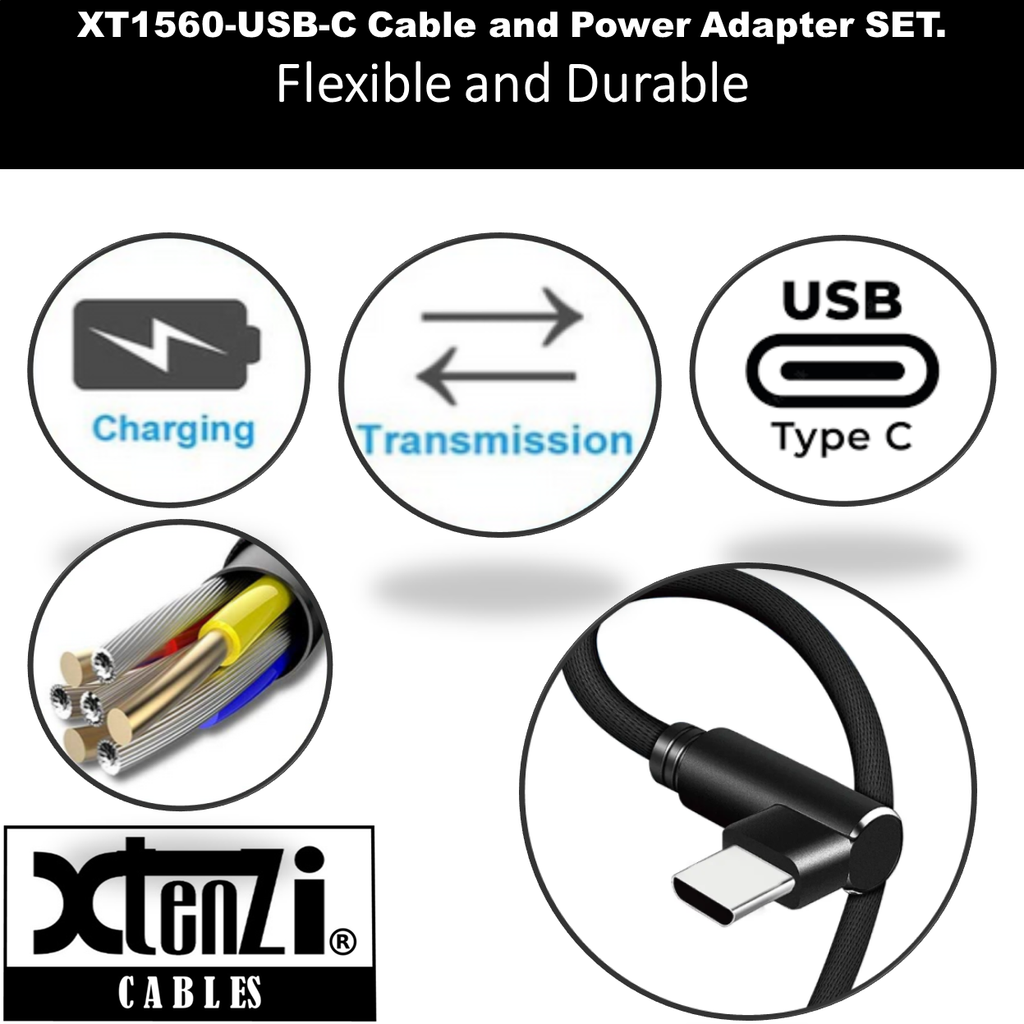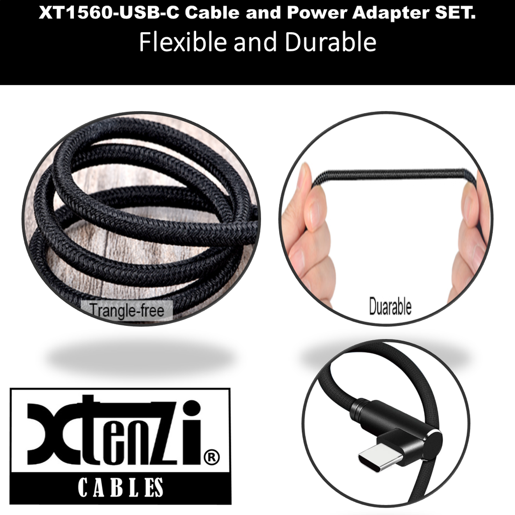 - Xtenzi XT1560 is set that include Wall adapter output as USB-A-5V and 9.8Feet USB-C Breaded cable with 90degree angle.