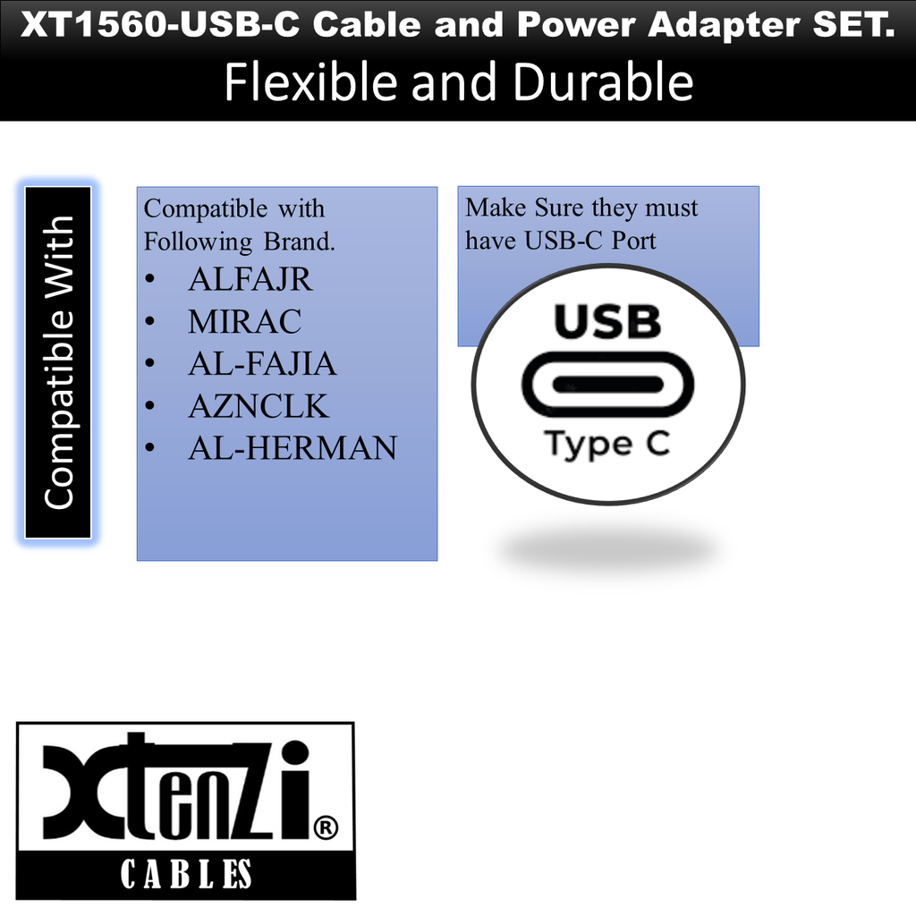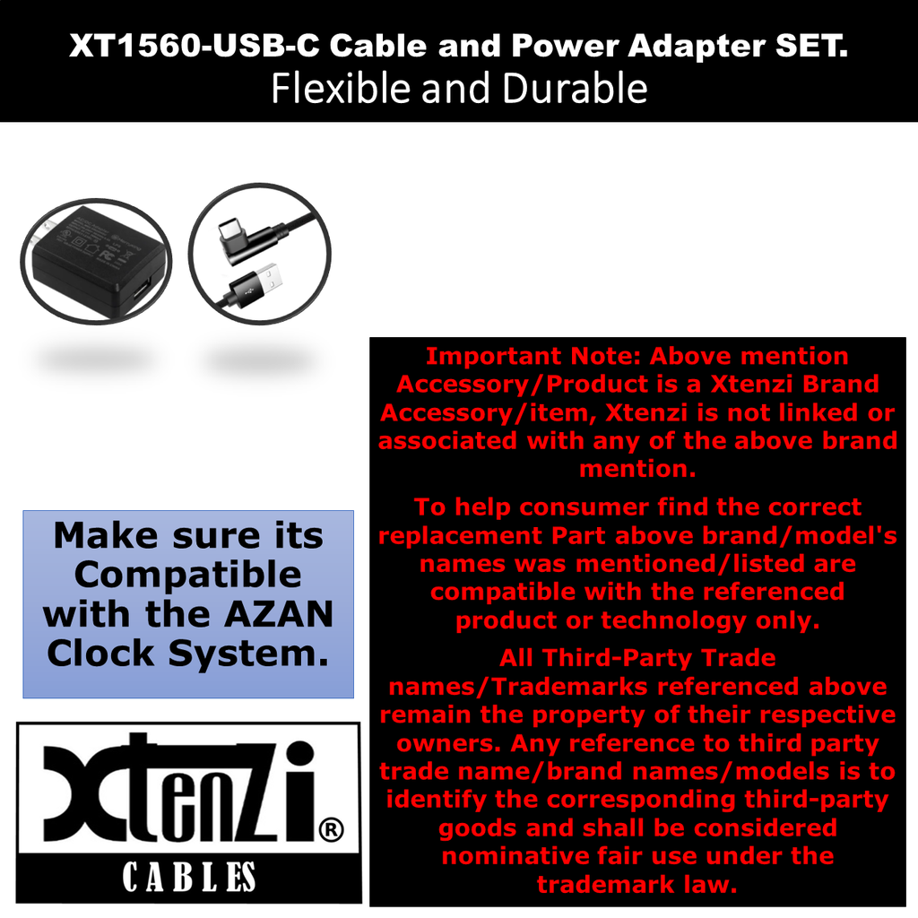 Xtenzi Home Wall Charger USB-C for Alfajr Islamic Azan Clocks CJ-17 CW-15 CA-21 CR-23