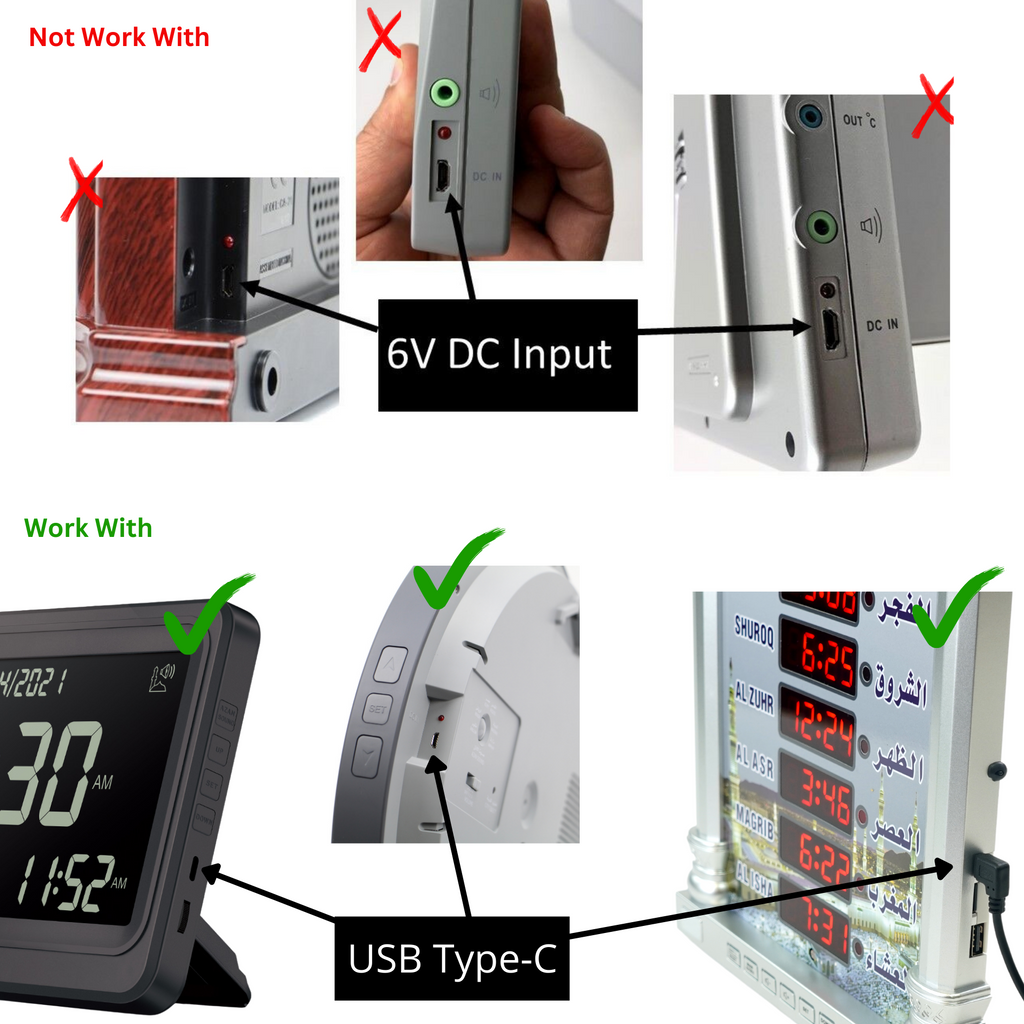 Xtenzi Home wall charger USB-C Alfajr Islamic Azan Clocks, Make sure that the input for your clock is USB type C if its round or micro-USB then you will need different adapter.